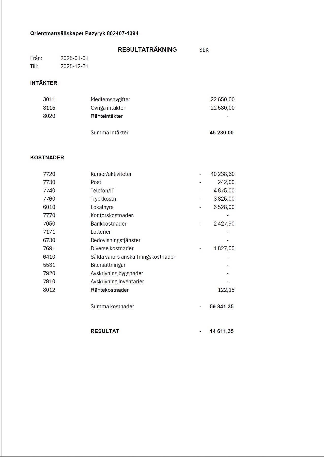 Årsbokslutet (dvs resultaträkning och balansräkning) samt verksamhetsberättelsen